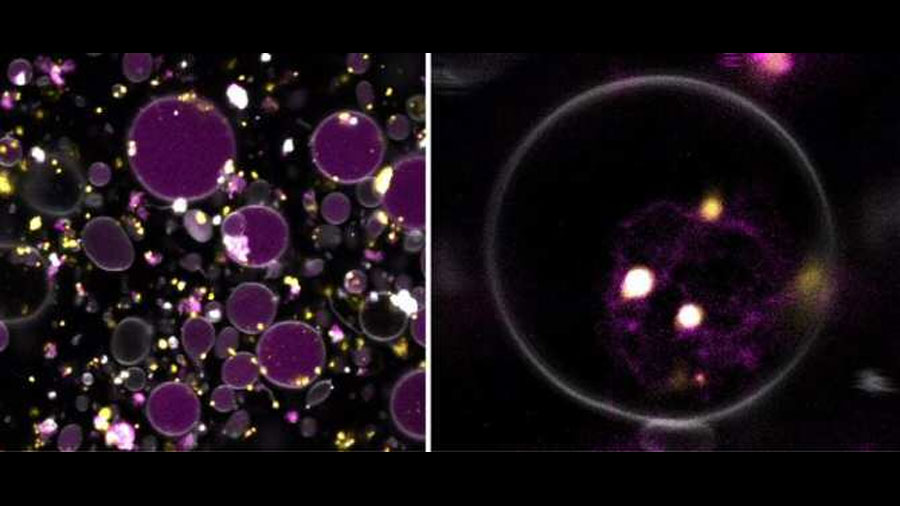 Las células artificiales con las que ha trabajado el equipo consisten en vesículas (esferas rodeadas de membrana y con un lumen en donde los investigadores colocaron los nanomotores. En la superficie de estos motores, se activó la polimerización de la actina, lo que provocó el crecimiento de largos filamentos proteicos en todas direcciones. Al mismo tiempo, los nanomotores comenzaron a moverse más rápido a medida que los filamentos de actina los impulsaban, al igual que en el caso de la Listeria monocytogenes. La estructura resultante se asemeja al citoesqueleto de las células vivas.