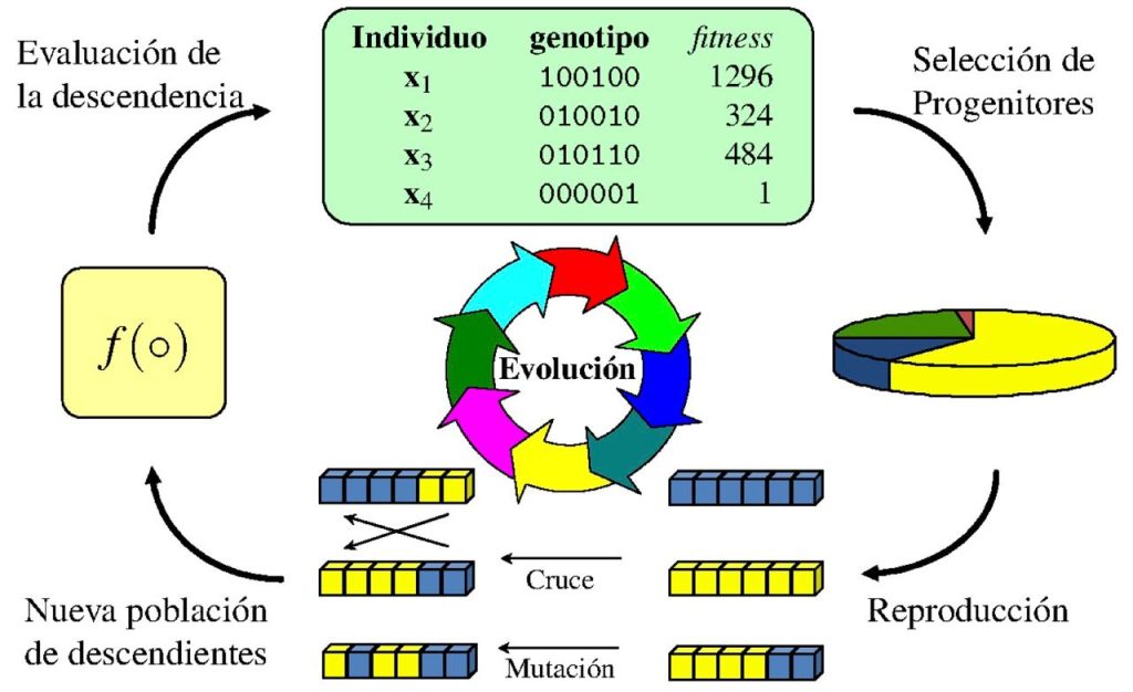 Un algoritmo genético (AG) toma una idea sencilla de la naturaleza: poblaciones de posibles soluciones que compiten, se reproducen y mutan; con el paso de las “generaciones”, la población mejora. En este algoritmo se representa cada solución como un “cromosoma” (una cadena de bits o números), definimos una aptitud que mide qué tan buena es, seleccionamos a las mejores, cruzamos sus “genes” y aplicamos una mutación aleatoria y pequeña, y posterior a ello se repite. Recomendamos a nuestros lectores revisar un artículo previo en esta sección, donde se explica con claridad y detalle más acerca de ellos [8].