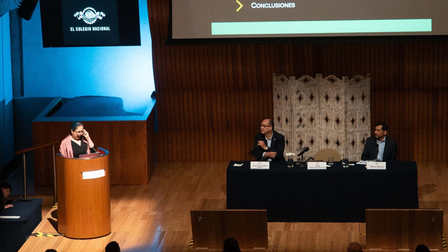 La experta en iconografía y cosmovisión de las Culturas del Golfo —quien participó con anterioridad en el ciclo La arqueología hoy con una conferencia dedicada al Juego de Pelota— expuso que fue precisamente en el Aula Mayor de El Colegio Nacional, a partir de una pregunta del público, como inició la investigación que asocia a los Voladores con el Juego.