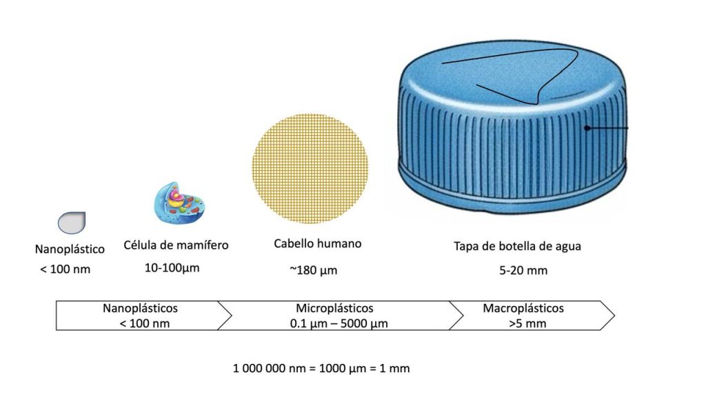 Los plásticos al partirse, triturarse y fragmentarse durante su uso o al ser desechados pueden formar microplásticos. Este es un término que se utilizó por primera vez en 2004 para referirse a fragmentos de plásticos con un tamaño inferior a 5 mm (Figura 3). Los microplásticos se han encontrado prácticamente en todos lados. Se encuentran en cuerpos de agua dulce, en el mar, en aguas subterráneas, en sedimentos, en suelos y hasta en la atmósfera…incluso se han detectado microplásticos en la nieve recién caída en la Antártida. Se ha detectado la presencia de microplásticos en diferentes seres vivos (animales, plantas, hongos) incluso en el humano, tanto en heces, en sangre, en la placenta, en el hígado y recientemente en el cerebro, urgiendo la investigación en torno a los efectos de estos microplásticos en nuestra salud. Por último, se ha revelado también la existencia de nanoplásticos, es decir partículas de plásticos en la escala nanométrica (millonésimas de mm), que son mucho más abundantes que los microplásticos y potencialmente más peligrosos. Por su tamaño, tienen una mayor facilidad para penetrar las células y tejidos de diferentes organismos (3). Es relevante mencionar la enorme exposición que tenemos hacia estos materiales, mediante la ingestión en forma de alimentos, mediante la inhalación, al encontrarse en el aire, y a través del contacto con la piel.