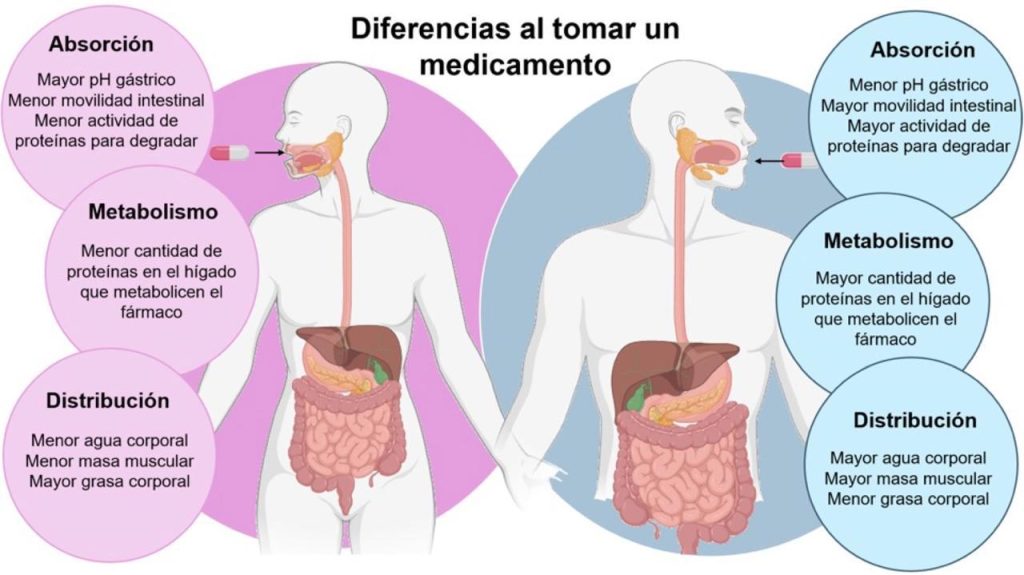 Esta exclusión de hembras en estudios sistemáticos resulta un problema cuando conocemos que las mujeres difieren de los hombres en múltiples aspectos biológicos relevantes para la farmacología: su composición corporal, la actividad enzimática hepática, su función renal y la respuesta inmunológica. A pesar de ello, durante años se utilizaron las mismas dosis estándar tanto para mujeres como para hombres.