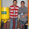 Humberto Salinas explicó que el proyecto consiste en una máquina que acelera la producción de mayor calidad de biodiesel en poco tiempo. Utiliza dos recipientes, en uno de ellos vierte el aceite vegetal reciclable.
