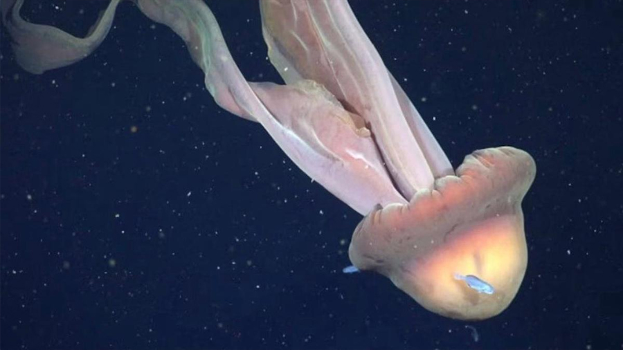 Durante una expedición científica, un equipo del Conicet y la UBA logró registrar imágenes de una medusa fantasma de 11 metros, hallada a 253 metros de profundidad en el Atlántico Sur