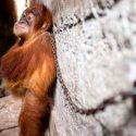 Mingky es un pequeño orangután que ha vivido cerca de un año encadenado a la pared de una casa, fuera del domicilio, que estaba, además, situado tan próximo de otro que se podría decir que el animal apenas tenía espacio para respirar.