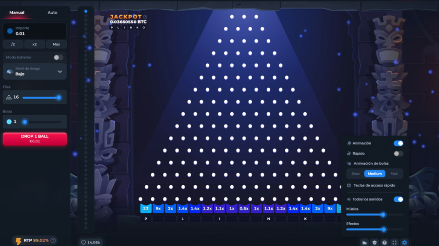 Plinko tiene algo adictivo. Ves esa bolita caer rebotando entre los clavos y te hipnotiza. El sonido, los colores, la expectativa de ver dónde termina… es pura dopamina visual.