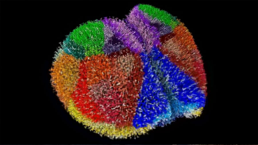Esta simulación muestra la corteza cerebral completa de un ratón. Aunque no es tan grande ni complejo como el cerebro humano, que contiene miles de millones de neuronas, el cerebro del ratón presenta similitudes con el humano. Por lo tanto, podría ser una herramienta de investigación muy útil.